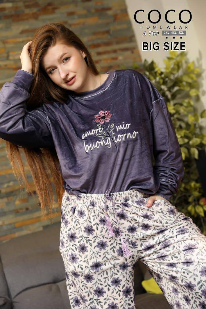 بيجامه حريمي قطيفه بيج سايز